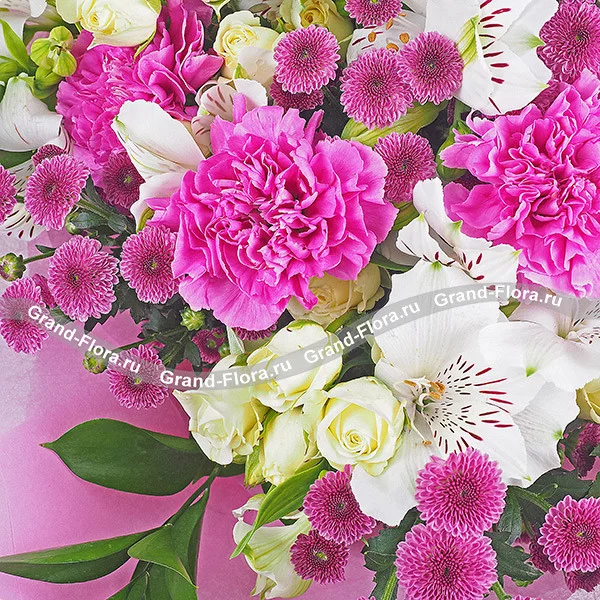 * оттенок хризантемы и гвоздики может отличаться от представленного на фото - допустимы оттенки от малинового до сиреневого