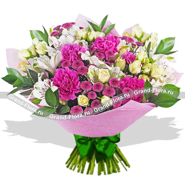 Вальс цветов - букет из кустовой розы, альстромерии и гвоздики